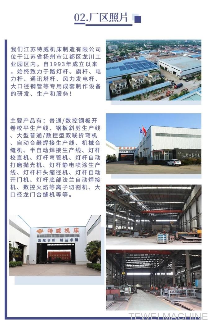 As a leading manufacturer of light pole production equipment in China, Jiangsu Tewei Machine Tool Manufacturing Co., Ltd. is dedicated to providing high-quality, high-efficiency production equipment and excellent services. We will continue to maintain high standards of production and service to ensure customer satisfaction.